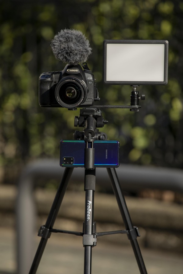 이번 유튜브 촬영장비 세트는 삼각대 위 스마트폰, 카메라, DSLR, 조명, 마이크를 모두 삼각대 하나에 의지할 수 있다. 또한 조명에는 AA 건전지 6개가 들어가는 배터리 팩으로 이용한 휴대성이 용이하고, 충전 및 AC 전원을 이용한 고정 충전까지 가능하다.