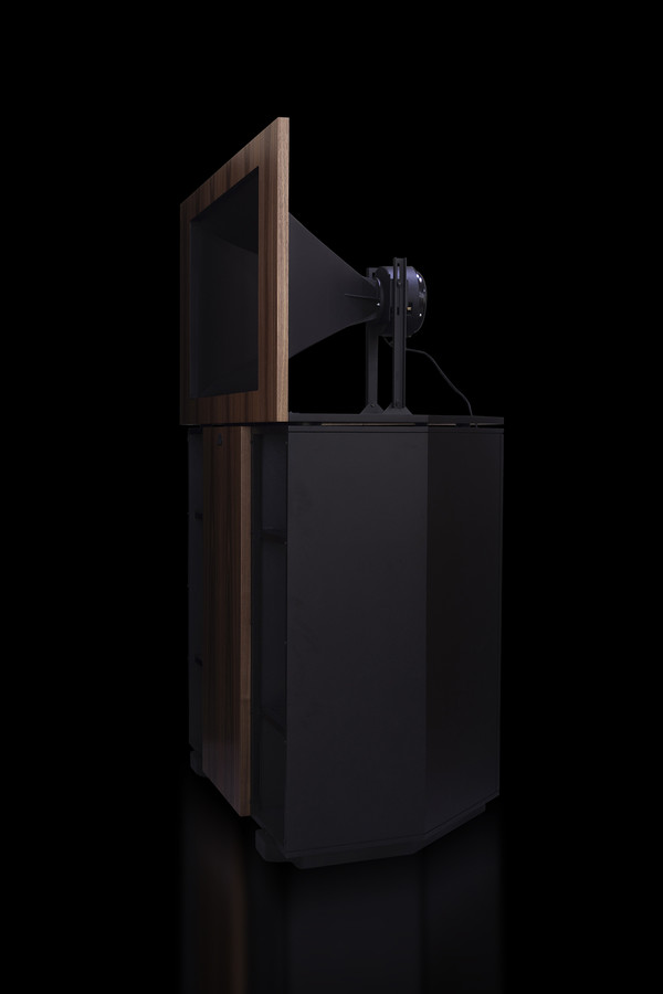 본격적으로 제품을 살펴보도록 하겠다. 첫 번째로 주빌리의 캐비닛 구조를 살펴볼 필요가 있다. 이 시스템의 실물은 웬만한 성인 남성의 키보다 클 정도로 대형 스피커인데, 위쪽은 혼 드라이버, 아래쪽은 베이스용 캐비닛 구조로 되어 있다. 아래쪽 베이스 캐비닛은 외관에서 보면 베이스 드라이버가 보이지 않는데, 전면 배플 뒤쪽에 2개의 12인치 베이스 드라이버가 정면으로 장착되었다. 내부는 M자형 미로와 같은 통로이며, 전면 사이드에서 혼과 같이 베이스 사운드가 방출되는 구조이다. 이는 직접 음보다는 캐비닛의 구조를 지나면서 저역을 끌어 올려 자연스러운 베이스를 연출하기 위한 노하우가 반영된 구조이다.