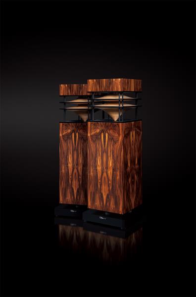 시리우스라 명명된 본 기는, 듀에벨의 플래그십에 속하는 모델이다. 본 기의 외관을 보면 통상의 스피커와는 판이한 형상에 자칫 놀랄 수도 있겠다. 상부에 두 개의 혼을 마주보는 형상으로 떡하니 설치해놨기 때문이다. 아마 이런 콘셉트의 제품은 지금까지 한 번도 본 적이 없어서, 나 역시 처음에는 깜짝 놀랐다. 자세히 보면, 상부 박스에 트위터가 담겨져 있어서, 그 음이 혼을 타고 나와, 이와 마주보는 혼과 부딪혀서 전 방향으로 확산되는 구조임을 알 수 있다.