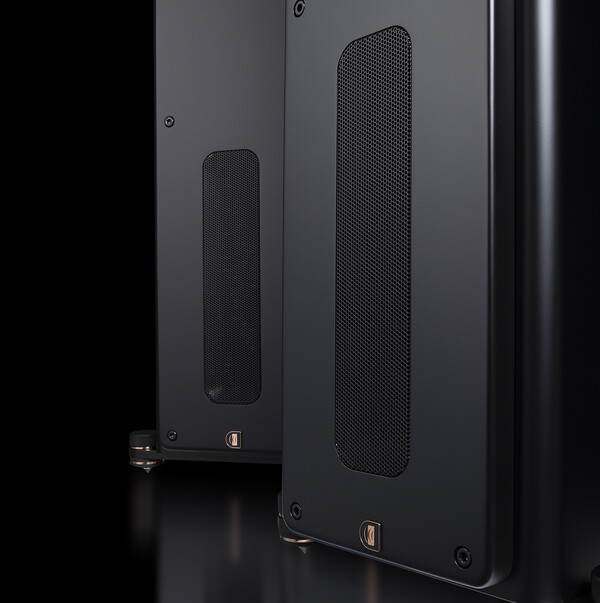 캐비닛은 견고한 브레이싱과 댐핑 처리를 했고, 일반적으로 스피커에서 사용하는 MDF보다 35% 더 밀도가 높은 HDF를 사용했다. 아름다운 전면 배플은 두께가 50mm로 매우 두텁다. 캐비닛 내부에 특수 설계가 적용된 전면의 수직 직사각형 베이스 리플렉스 구조도 이채롭다. 새틴 블랙 마감은 절제되면서도 우아하여 세련된 거실에도 잘 어울이며 겉모습이 꽤 멋지다. 그릴은 옵션으로 구매할 수 있다. 기본 제공되는 조절식 풋 구조도 튼튼하고 꽤 멋지다.
