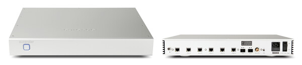 다음으로 NH10이다. 오렌더의 첫 네트워크 허브, 이름만으로도 벌써부터 기대되는 콘셉트이다. 요즘 랜 케이블과 더불어 이 네트워크 허브 쪽으로 많은 관심을 보여주고 있는데, 오렌더의 네트워크 허브라면 기대하지 않을 수 없다. 또한 오렌더가 워낙 노이즈에 거의 완벽 수준의 대응을 보여주었기 때문에, 당연히 뮤직 서버로 전달되는 첫 신호의 깨끗함과 완벽성은 최고 수준일 듯한 느낌. 0.005ppm 미만의 주파수 안정성을 갖춘 매우 안정적인 OCXO가 탑재되었고, 당연히 FPGA 동기화로 완벽한 타이밍을 이끌어낸 모습이다. N50과 마찬가지로 더 상위의 클록을 위해, BNC 마스터 클록 입력을 지원한다. 전원 쪽도 오렌더답게 리니어 전원으로 풀어간 모습으로, 노이즈가 많은 DC-DC 컨버터 없이 선형 레귤레이션으로만 전력을 구성했다. 노이즈 아이솔레이션 랜 포트는 2× 2개, 7× 4개로 구성되었고, SFP 포트도 2개나 마련된 모습. 오렌더의 특징 중 하나인 LED를 차단할 수 있는 스위치도, 후면에 마련되어 있다.