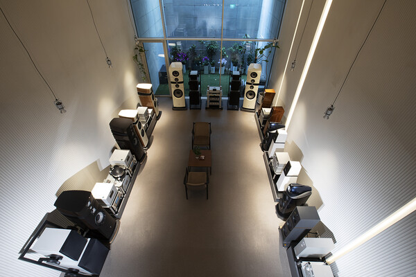 1층에 베이커리 카페만 눈에 보여서 이곳이 맞는지 한참 서성이고 있었는데, 조은전자라고 써 있는 간판도 보이질 않아 더욱 혼란스러웠다. 그래서 큰마음을 먹고 베이커리 카페로 들어가 아래로 내려가 보니 세상에 이런 오디오 숍도 있었던가 싶을 정도로 높은 층고의 멋진 공간에 수많은 하이엔드 오디오 기기가 제각기 멋을 뽐내며 자리하고 있었다. 아마 국내 최대 규모가 아닐까 생각해본다. 이렇게 조은전자에 도착하게 되었고 본격적으로 김연진 대표와 만나 이야기를 나누었다.