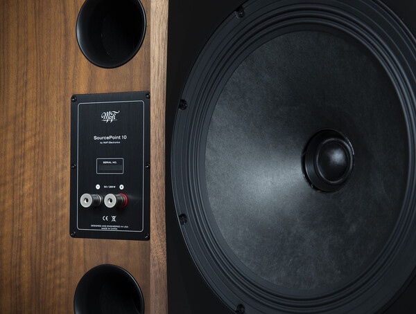 유닛은 역시 앤드류 존스의 손길이 녹아 있다. 당연히 동축형이다. 10인치 우퍼 중앙에 1.25인치 트위터가 자리한 모습. 역시 10인치면 북셀프로서는 넉넉한 사양이다. 사실 모파이 스피커들은 모델명만 봐도 대충 유닛 크기를 짐작할 수 있는데, 만약 소스포인트 8이었다면, 당연히 8인치 유닛이 들어갔다는 뜻이다. 참고로 소스포인트 888은 8인치 유닛이 3개 들었다는 말. 위트 있는 작명법이다. 우퍼 소재는 특이하게도 고전적인 페이퍼 콘. 요즘 개인적으로 이 페이퍼 소재의 소리가 참 자연스럽고 좋은데, 앤드류 존스는 이 소재를 지금의 설계에서 가장 최적화된 솔루션이라 손꼽고 있다. 실제 이를 통한 주파수 대역은 무려 42Hz-30kHz. 고음이고, 저음이고 쭉쭉 잘 만들어내는 스펙이다. 특히 감도는 91dB로 앰프 매칭에도 여유로운데, 참고로 모파이 스피커는 진공관 매칭에도 상당히 좋다.
