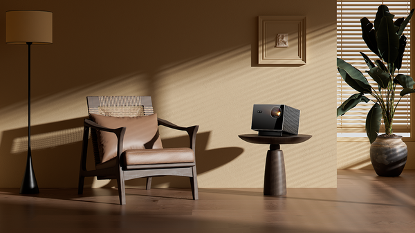 마지막으로 세련되고 혁신적인 디자인을 언급해야 하는데, 일단 한눈에도 기존 프로젝터와 다르다는 것을 알 수 있으며, 레드닷 디자인 어워드 2025에서 수상한 바 있는 디자인이다. 사각의 디자인과 풀 서클 렌즈, 금속 슬랫으로 모던한 스타일을 자랑하며, 숨겨진 조절식 다리로 간편한 설치를 할 수 있다.