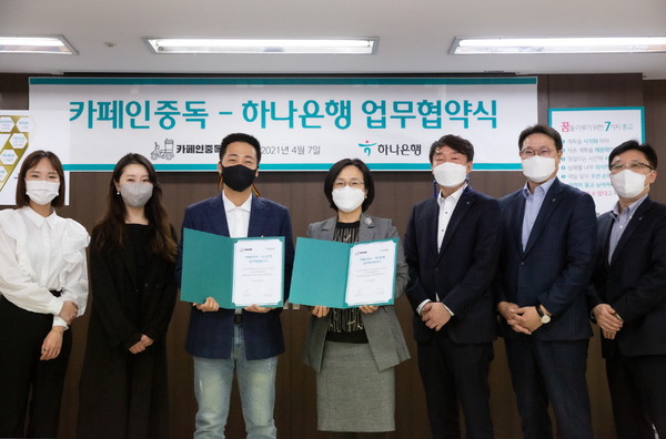 배달전문 테이크아웃 전문카페 ‘카페인중독’ 운영사인 주식회사 중독컴퍼니(대표 김성우)가 하나은행과 7일 업무협약(MOU)을 맺었다.