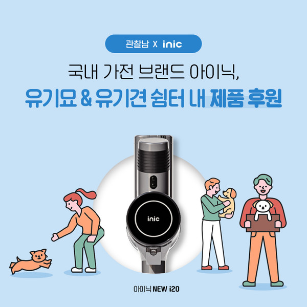 아이닉은 에어프라이어와 무선청소기, 로봇청소기를 판매하는 가전제품 브랜드로 유기 동물 쉼터에 필요한 무선청소기 NEW i20을 후원했다.