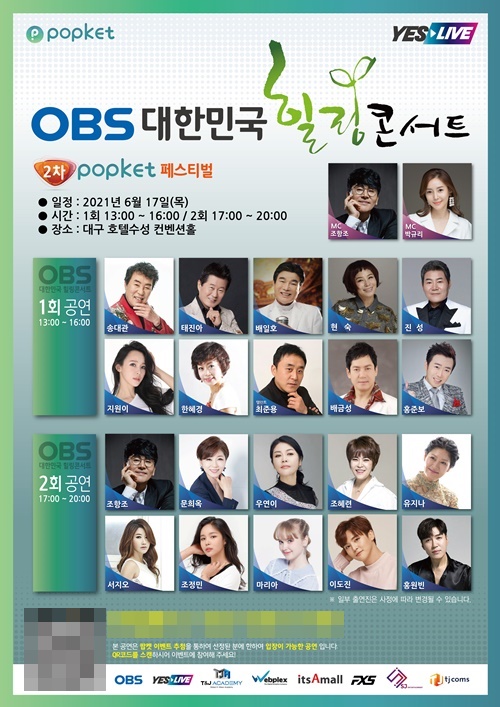 대한민국 힐링 콘서트는 ‘팝켓페스티벌’로 트롯트 스타들의 대잔치로 그 위대한 서막을 장식한다.