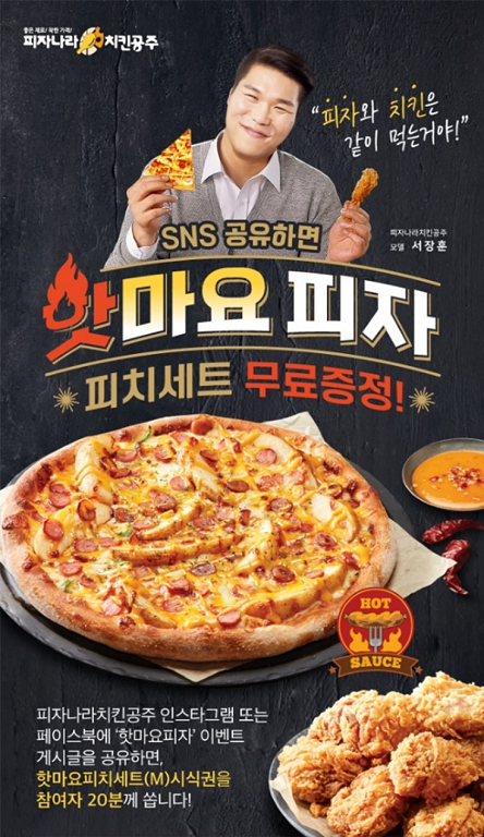 피자나라치킨공주의 ‘핫마요 피치세트’의 무료 증정 이벤트는 인스타그램이나 페이스북에 ‘핫마요 피자’ 게시글을 공유하고 좋아요와 해시태그 등을 달면 응모된다.