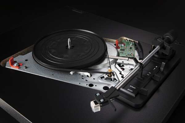 이 턴테이블의 특징은 서브 섀시가 있다는 것으로, 전체 자동 시스템과 톤암 및 알루미늄 플래터가 MDF 소재의 플린스 부분과 분리된 플로팅 서브 섀시 플랫폼에 구축되어 있다. 즉, 플로팅 방식으로 턴테이블의 적인 진동을 제어하는 턴테이블인 것이다. 이는 당연히 LP 재생 시 큰 장점으로 다가온다. 그리고 이 턴테이블의 플래터 아래에는 빨간색의 운송 잠금 장치가 2개 있는데, 사용 시 이를 제거해야 한다.