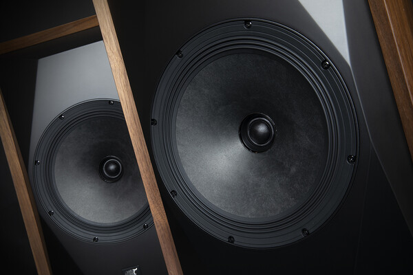 디자인은 굉장히 고전미 넘친다. 두툼한 인클로저 스타일로, 입체적으로 각진 구조가 시선을 사로 잡는다. 당연히 음의 회절 현상을 잡아낸 설계 법이다. 이쪽 규모는 무려 2인치 두께인데, 실제 보면 체급 자체가 굉장히 커 보이긴 한다. 전체 인클로저는 천연 원목 베니어로 따뜻하고 우아한 느낌이며, 내부 브레이스도 2개의 딴딴한 구조로, 일체의 흔들림조차 없을 듯한 설계를 보여준다. 전체 인클로저 두께도 모두 다르게 가져가는 이상적인 인클로저 설계를 보여주는 철두철미한 제품이다.