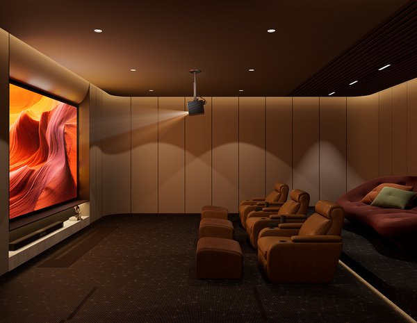 스마트 빔 프로젝터 기능도 완벽하게 준비되어 있는데, 넷플릭스, 유튜브, 디즈니+, 아마존 프라임 비디오 등과 같은 인기 스트리밍 플랫폼을 통합하는 구글 TV 스마트 시스템이 내장되어 있다. 에어플레이 2, 크롬캐스트, 미라캐스트를 사용해 미러링으로 스마트 기기의 콘텐츠를 큰 화면으로 간편하게 전송할 수 있고, 내장 미디어 플레이를 사용할 수도 있다. 그리고 콘트롤4, 애플 홈킷, 구글 홈, 아마존 알렉사 등 주요 스마트 홈 시스템과 완벽하게 통합되어 있다. 또한 최대 기가비트 네트워크 접속으로 무선 환경에서도 버퍼링이나 끊김 없이 안정적으로 4K 스트리밍을 즐길 수 있다. 그리고 옵션으로 준비되어 있는 썬더비트 스피커라는 무선 스피커로 돌비 애트모스 5.1.2 시네마틱 사운드를 구현할 수 있다.